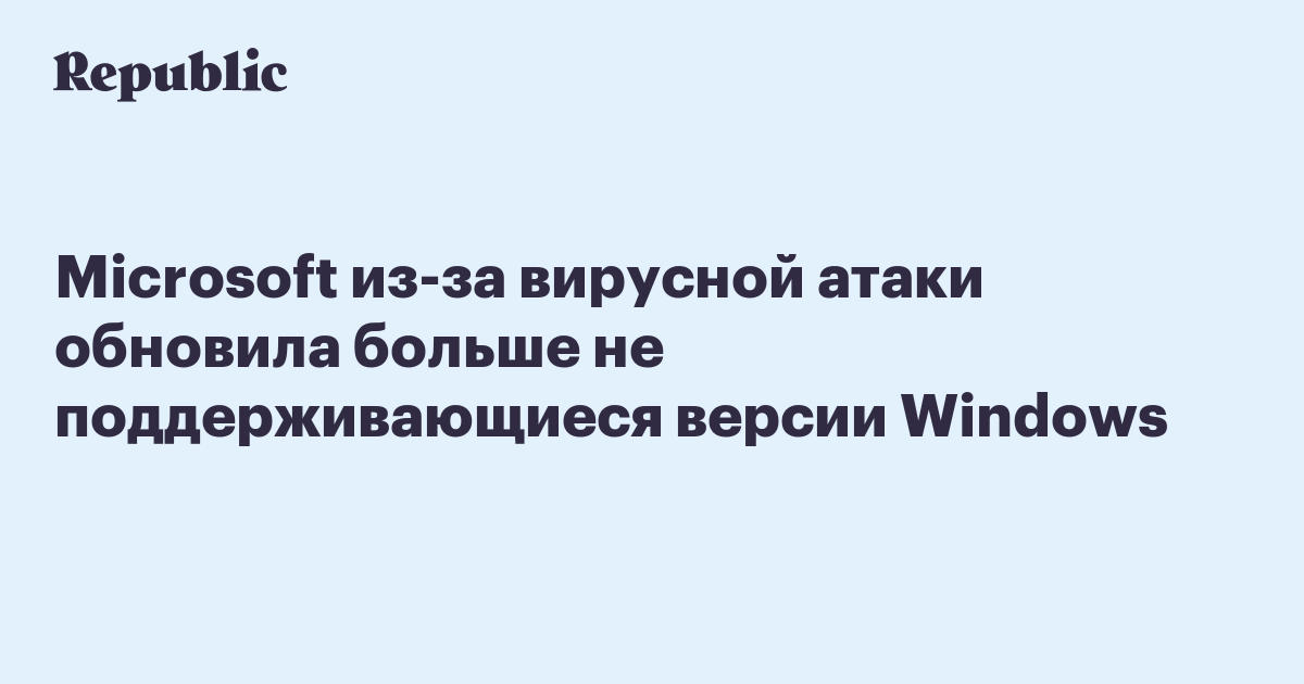 Microsoft из-за вирусной атаки обновила больше не поддерживающиеся версии Windows