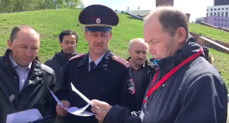 Сегодня, когда участники акции начали возводить агитационный куб, к организатору пикета подошел подполковник полиции Александр Царевский и попросил Азата Габдульвалеева проследовать в отдел полиции для составления протокола об административном правонарушении. Габдульвалеев предложил составить протокол на месте, однако Царевский ответил, что это необходимо сделать в отделе полиции.
