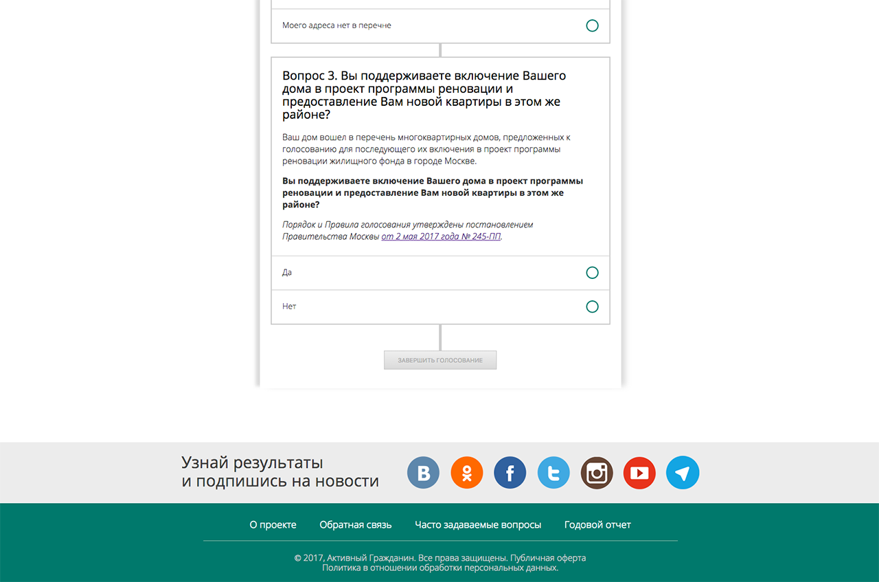 Голосование продлится до 15 июня, проголосовать можно также в любом центре «Мои документы». В окончательный список на снос включат только те дома, где за это выступают не менее двух третей квартир. При этом все, кто не проголосует, будут учтены как согласные.