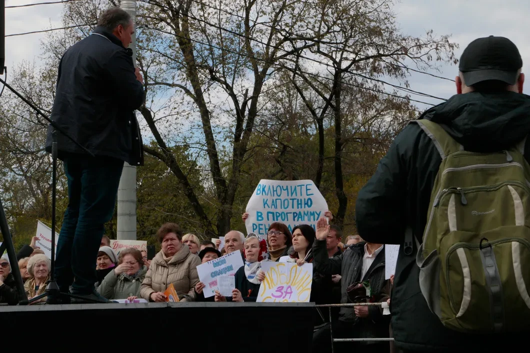 Москвичи на митинге за снос пятиэтажек, который прошел в субботу в Кузьминках. Фото: Светлана Виданова/ специально для «Новой газеты»Сторонник сноса пятиэтажек на митинге. Фото: Светлана Виданова/ специально для «Новой газеты»Москвичи с плакатами в поддержку программы сноса. Фото: Светлана Виданова/ специально для «Новой газеты»Заместитель председателя Госдумы от «Единой России» Петр Толстой выступает перед митингующими за снос. Фото: Светлана Виданова/ специально для «Новой газеты»Москвичи радуются переселению. Фото: Светлана Виданова/ специально для «Новой газеты»Сбор подписей в поддержку реновации. Фото: Светлана Виданова/ специально для «Новой газеты»
