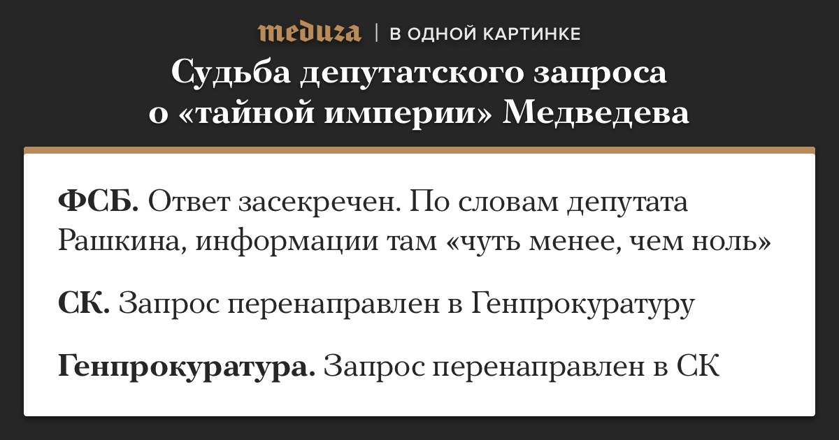 Судьба депутатского запроса о «тайной империи» Медведева. В одной картинке