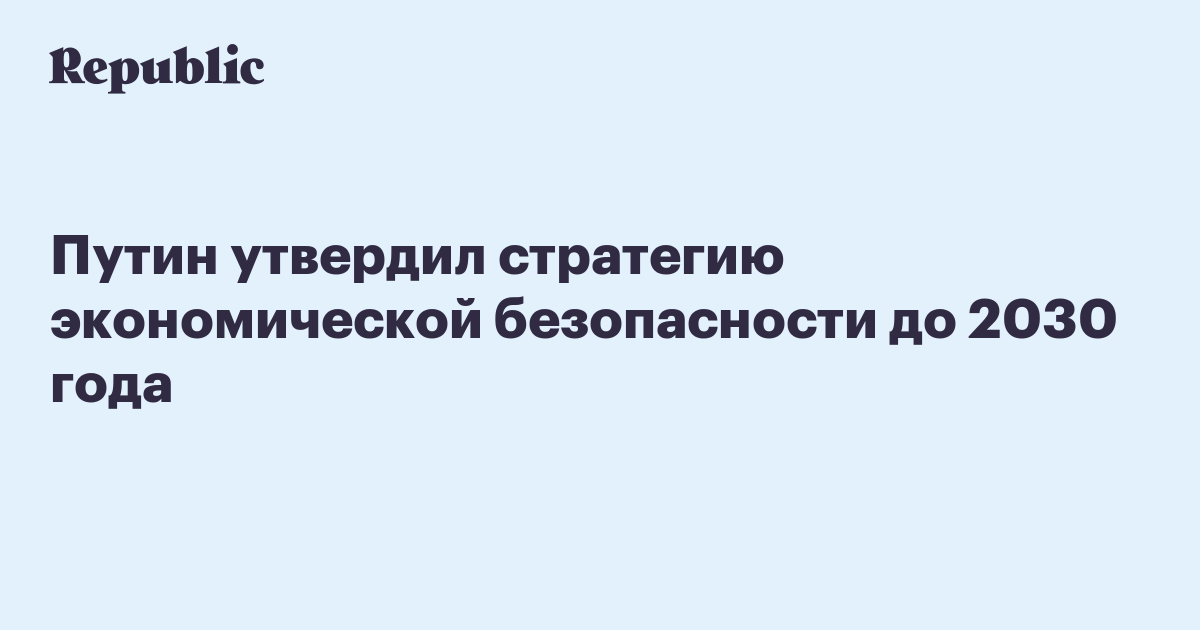 Президент РФ Владимир Путин утвердил стратегию экономической безопасности до 2030 года, документ размещен на официальном портале правовой информации.