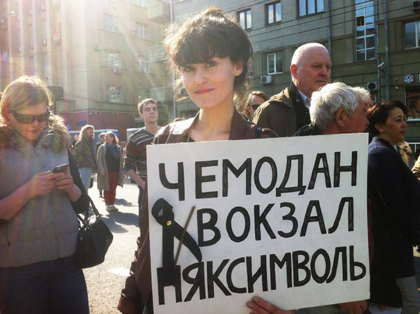 Фото: Александра Кокшарова Няксимволь — это родной город Собянина. Он должен уйти. Я здесь выражаю свою гражданскую позицию. Меня очень расстраивает то, что происходит в городе моих предков, которые жили тут более ста лет. Мне неприятно смотреть на то, что не реставрируются старинные здания, мне абсолютно противен проект реновации, потому что Москву хотят превратить в муравейник, а тут и так слишком много людей. Это недальновидная политика, касающаяся транспорта, экологии, исторического облика города. Я считаю, что вся политика Собянина такая, потому что тратится огромное количество денег на всякие бесполезные вещи, такие как «Фестиваль варенья». Все это неоправданно дорого, а в стране очень много проблем с озеленением, с разрушением памятников, проект мне кажется ненужным, и я выступаю за отставку Собянина и его команды.