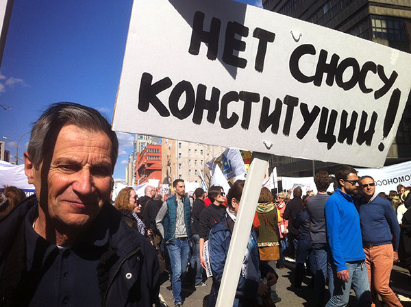 Фото: Александра Кокшарова Я живу в районе «Аэропорт», мой дом не попал в программу реновации. Сегодня перед митингом мы с другими жителями района встретились заранее в метро, нас было около пятидесяти человек. Здесь к нам присоединились и другие жители района. У многих на плакатах написано «Район против сноса”. Мы готовились к митингу, встречались в кафе, обсуждали лозунги, собрали немного денег и напечатали плакаты в типографии, но многие нарисовали сами. Лозунги мы тоже придумывали вместе. У нас еще есть группа «Аэропорт против сноса»- там 380 человек. Мы все выступаем против закона о реновации как совершенно жульнического и антиконституционного. Мы хотим защитить наши дома, нашу частную собственность, нашу конституцию и наш город.