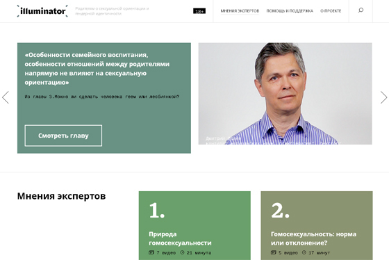 Цель проекта illuminator.info — предложить взрослым альтернативный источник научной информации о сексуальной ориентации и гендерной идентичности, дать родителям возможность получить помощь, чтобы затем они, в свою очередь, смогли принять и поддержать своих детей.