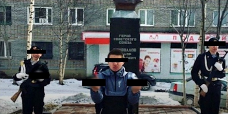 Полиция начала проверку фото подростков, которые показали средний палец у памятника Герою Советского союза в Ковдоре