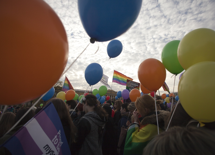 «Изгоняю тебя, дух гомофобии»: фото с «Радужного флешмоба» на Марсовом поле