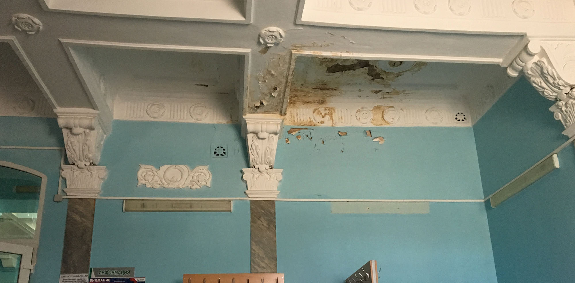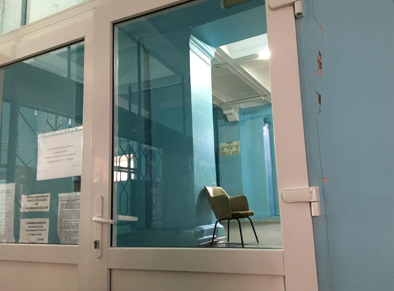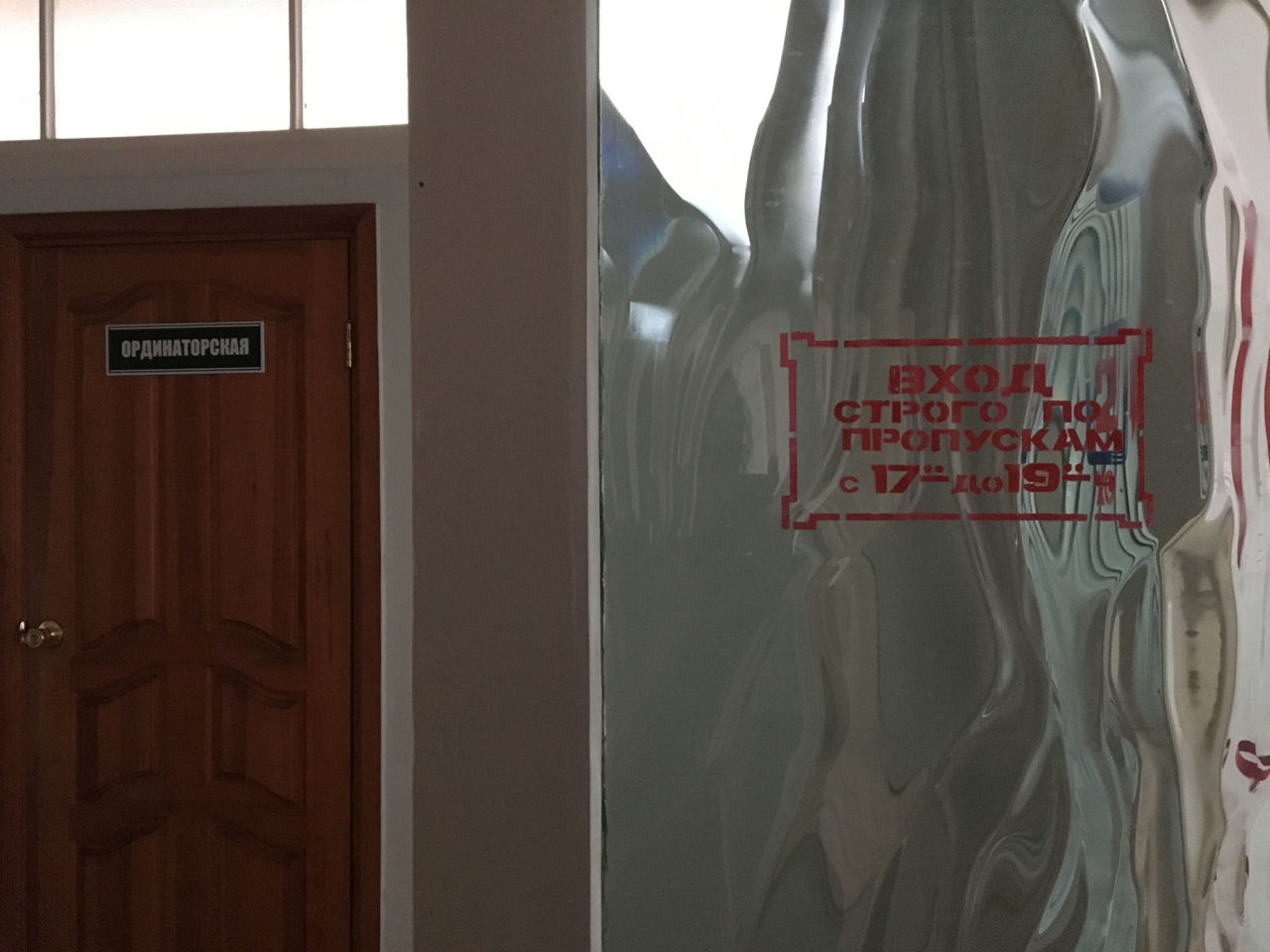 В приемном холле стационара — обшарпанная лепнина и протекающий потолок. Тихонько переговариваются между собой гардеробщицы, обмениваясь сплетнями с посетителями. Разговариваю с мужчиной, который оказывается мужем местной медсестры. Проблема одна — зарплата низкая, смеется он: «В больнице уже много лет почти все медикаменты за свой счет, только капельницу и могут поставить. Я сам тут лежал несколько месяцев назад». Перебои с питанием тоже бывают, признается он. «Хлеб? А что хлеб? Ну, вроде не было, но вроде уже и есть», — не понимает моего беспокойства Сергей. Пытались их закрыть, вспоминает он, но народ взбунтовался, больница одна, и не деться без нее никуда.