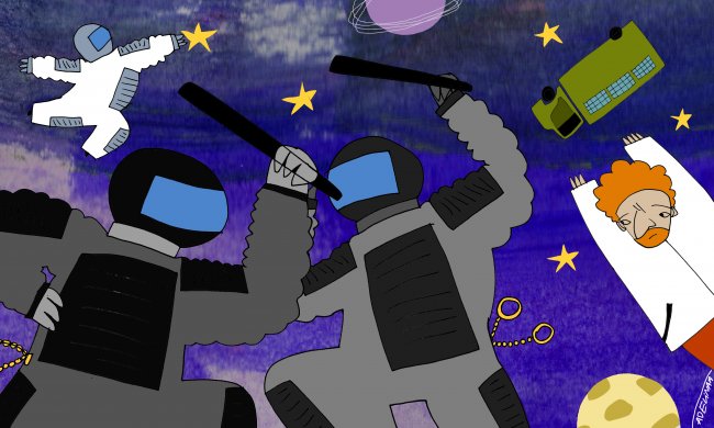 Захожу в ПАЗик, там люди уже общаются между собой. На митинге никто не делал ничего противозаконного, закинули всех, кто просто под руку попался. Я в окно смотрю, а там полицейский изображает, как он кого-то дубинкой бьет (видео есть в распоряжении редакции — ОВД-Инфо), и ОМОНовцы все смеются.