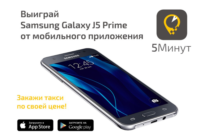 Приложение «5Минут» — удобный современный сервис на вашем смартфоне или планшете, который позволяет вам экономить время и деньги, получать скидки и ваучеры на бесплатные поездки, участвовать в бонусных программах и акциях. Прямо сейчас подписчики группы «5Минут» «ВКонтакте» могут принять участие в розыгрыше смартфона Samsung Galaxy J5 Prime 16 GB с двумя SIM-картами. Подробности розыгрыша здесь. Итоги будут подведены 12 июня.