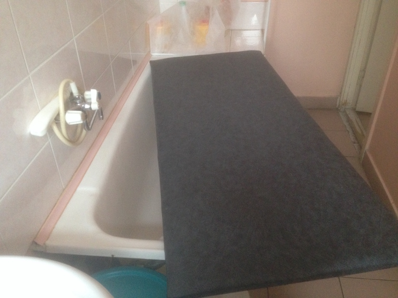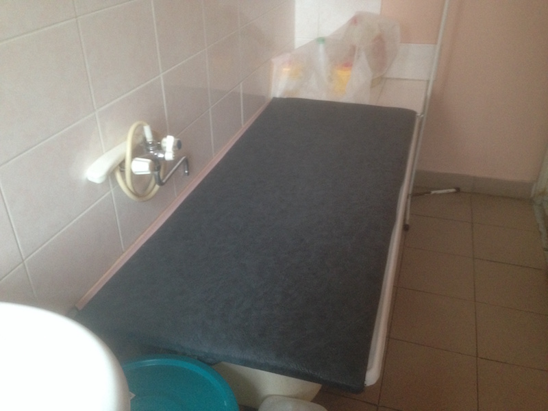 На деле это ванная, покрытая дермантиновым листом фанеры. Прикидываю, как тут классно медсёстрам с неходячими.