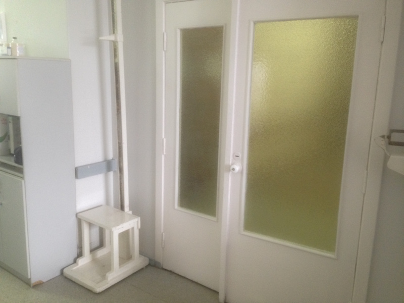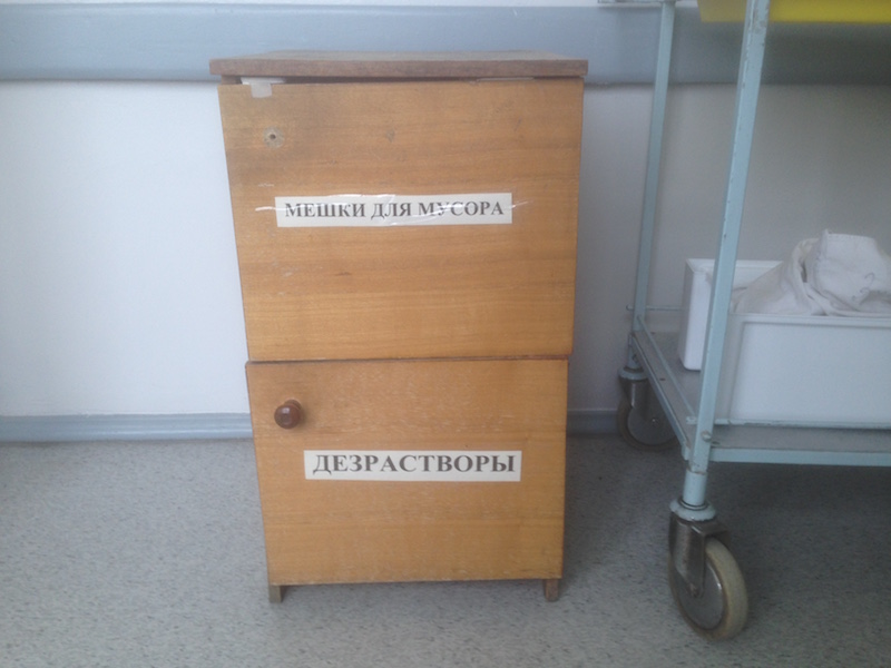 Это непременная клизменная. Здесь та же старинная тумбочка. Видимо, тоже медицинская.