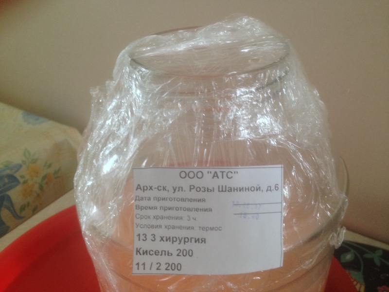Выяснилось, что персонал больничных буфетов и столовок считается медицинским, ему надо выплачивать специальные надбавки, учитывать медицинский стаж, и прочие медицинско-бухгалтерские фишки. Руководство соптимизировало "медицинских" поваров, а "освободившиеся" помещения передало в обслуживание компании "Какой-то там трест". То, что готовит трест, никто не ест. Фото еды выкладывать не буду, но покажу, в чём они разносят питание. Россия, XXI век, больничный кейтеринг, ей-богу. А вот про кисель - врут. Вода с киселём.