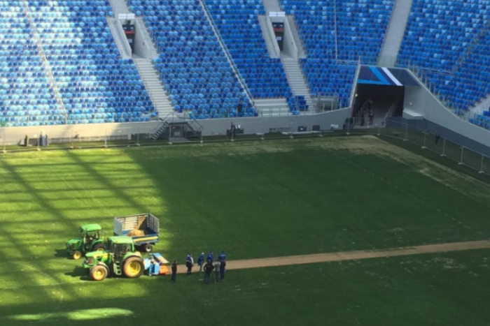 UPD. Источник «Фонтанки» в аппарате вице-губернатора Игоря Албина рассказал, что решение постелить рулонный газон согласовано с FIFA, Минспортом России, ФК «Зенит», а также ведущими национальными и зарубежными экспертами. По словам собеседника издания, на установку газона уйдет неделя, а все работы проведут за счеткомпания «Бомард», делавшей газон, и ФК «Зенит».