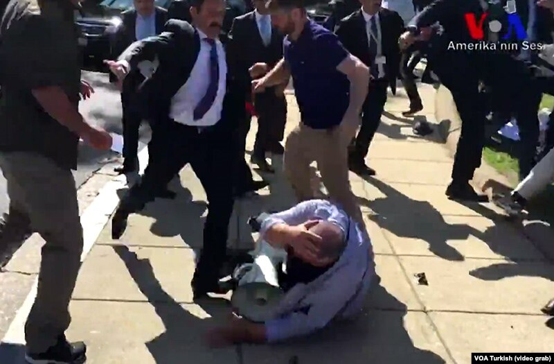 Драка между личной охраной Эрдогана и демонстрантами началась, когда участники акции протеста перед резиденцией посла Турции вынесли флаг Рабочей партии Курдистана. Полиция пыталась разнимать участников столкновений. Пострадали 9 человек, двое задержаны. Во время выступления в Белом доме президент Эрдоган назвал курдские организации "террористическими" и призвал к борьбе с ними. США действуют в союзе с курдскими организациями в Сирии и Ираке в борьбе с джихадистами.
