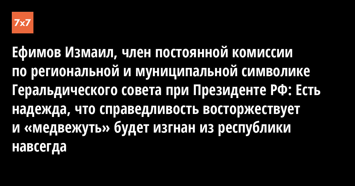 Ефимов Измаил, член постоянной комиссии по региональной и муниципальной символике Геральдического совета при Президенте РФ: Есть надежда, что справедливость восторжествует и «медвежуть» будет изгнан из республики навсегда