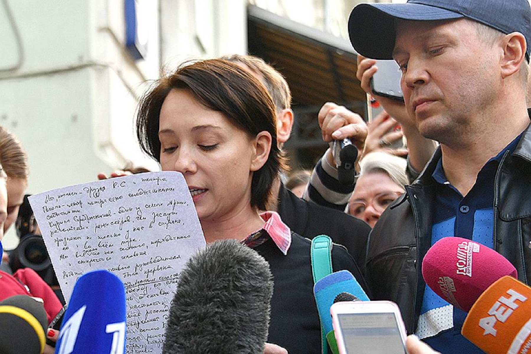 Актриса Чулпан Хаматова приехала к театру специально, чтобы зачитать обращение актеров в поддержку Кирилла Серебренникова. Обращение подписали, в частности, Олег Табаков, Евгений Миронов, Марк Захаров, Алла Демидова, Сергей Гармаш, Елизавета Боярская и другие.