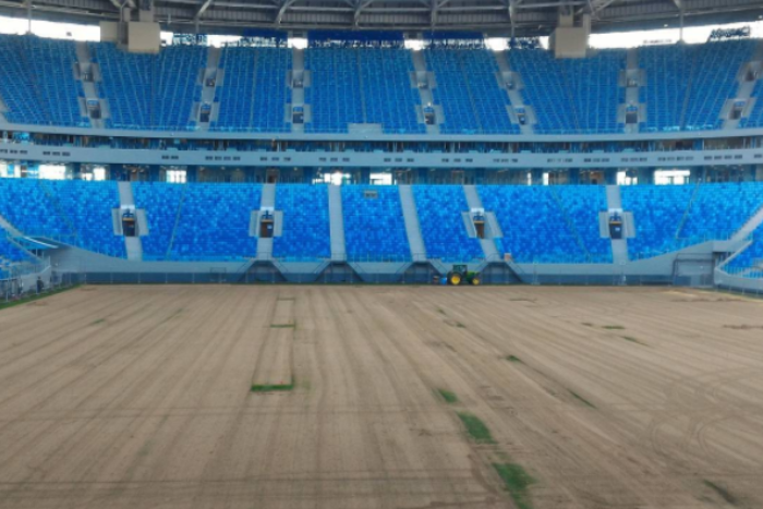 На стадионе «Санкт-Петербург Арена» полностью срезали газон