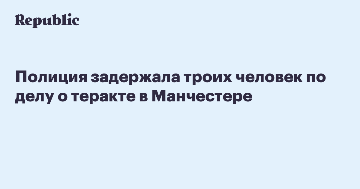 Полиция сообщила об аресте троих человек на юге Манчестера по делу о теракте на стадионе «Манчестер Арена». Об этом сообщает BBC News.