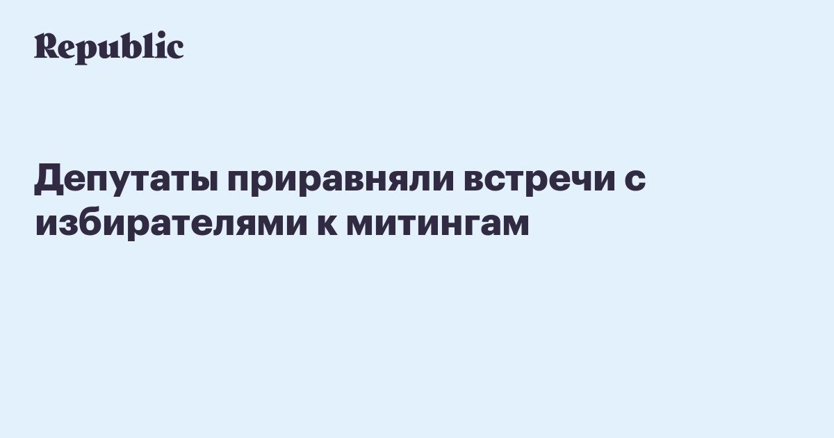 Согласно законопроекту, депутаты обязаны предупреждать местные власти о публичном мероприятии не позднее, чем за пять дней до встречи. Встречи с избирателями в помещениях проводятся по-прежнему без уведомлений. При этом даже встречи депутатов в специально отведенных местах будут разрешены, только если они не будут мешать пешеходам и транспортным средствам, а также не нарушат «функционирование объектов жизнеобеспечения, транспортной или социальной инфраструктуры, связи». До этого любые встречи депутатов с избирателями проходили в свободном режиме.