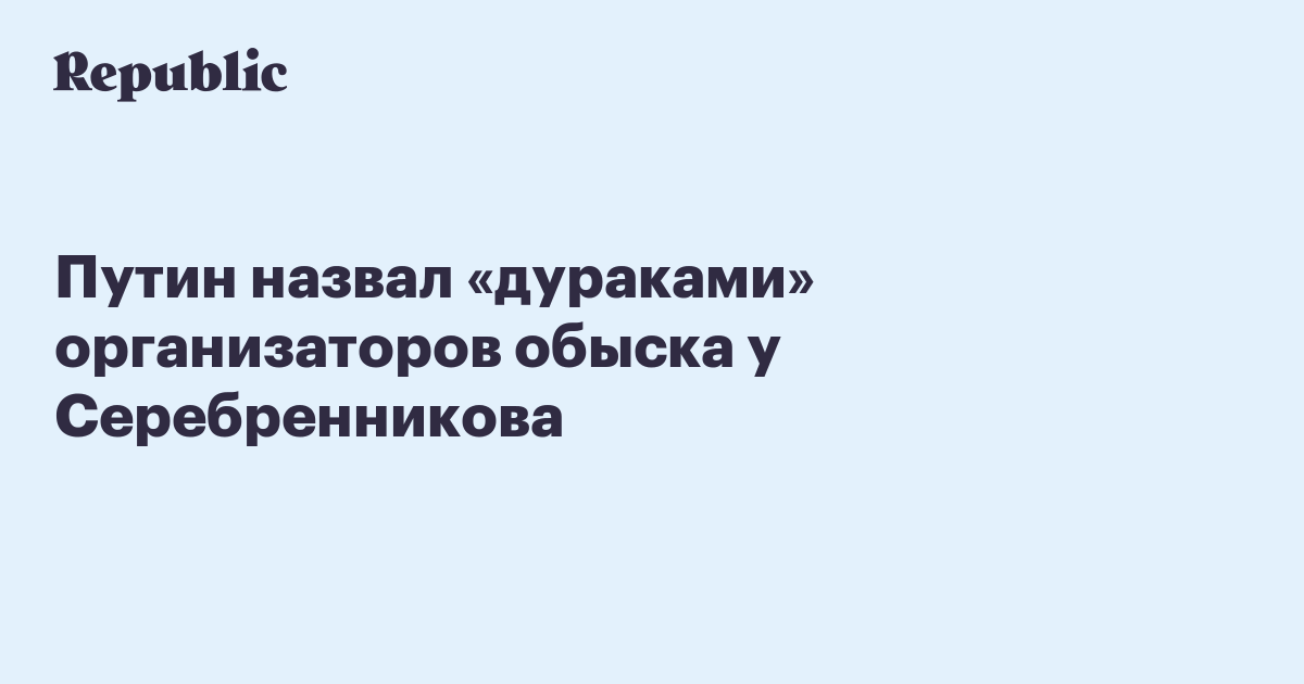 Президент Владимир Путин назвал «дураками» организаторов обыска у художественного руководителя театра «Гоголь-центр» Кирилла Серебренникова, передает «Коммерсантъ».