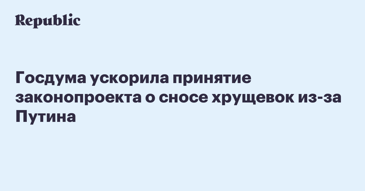 Госдума ускорила принятие законопроекта о сносе хрущевок из-за Путина