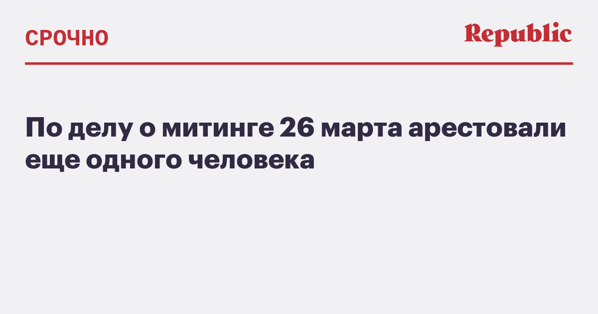 По делу о митинге «Он нам не Димон», прошедшем 26 марта в Москве, арестовали еще одного человека – Дмитрия Крепкина. Об этом Republic сообщил адвокат Ильнур Шарапов.