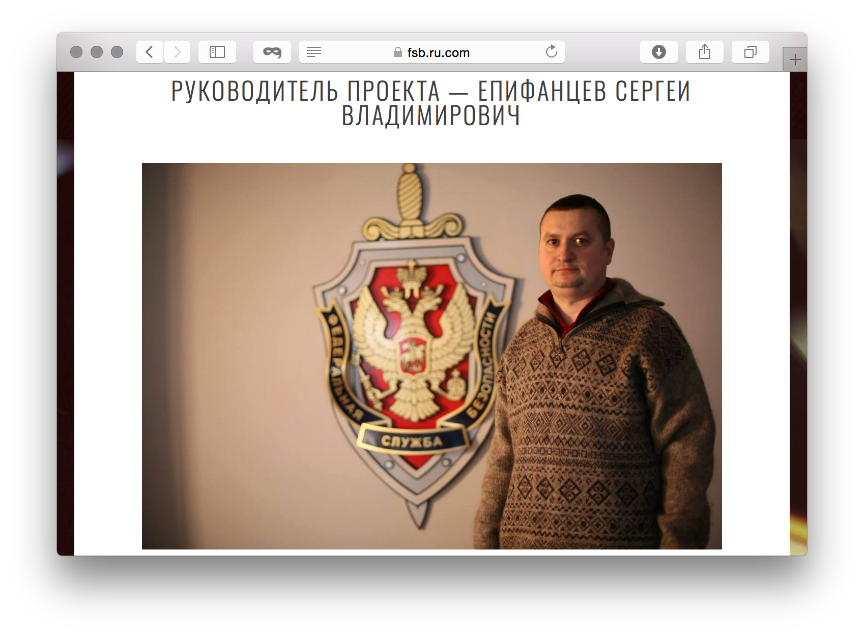 Для рассказа о деятельности проекта Епифанцев зарегистрировал сайт с доменом fsb.ru.com. На главной странице стоит его фотография на фоне герба ФСБ; там же опубликована ссылка на презентацию проекта, в которой рассказывается о сотрудничестве с Минобороны и ФСБ.