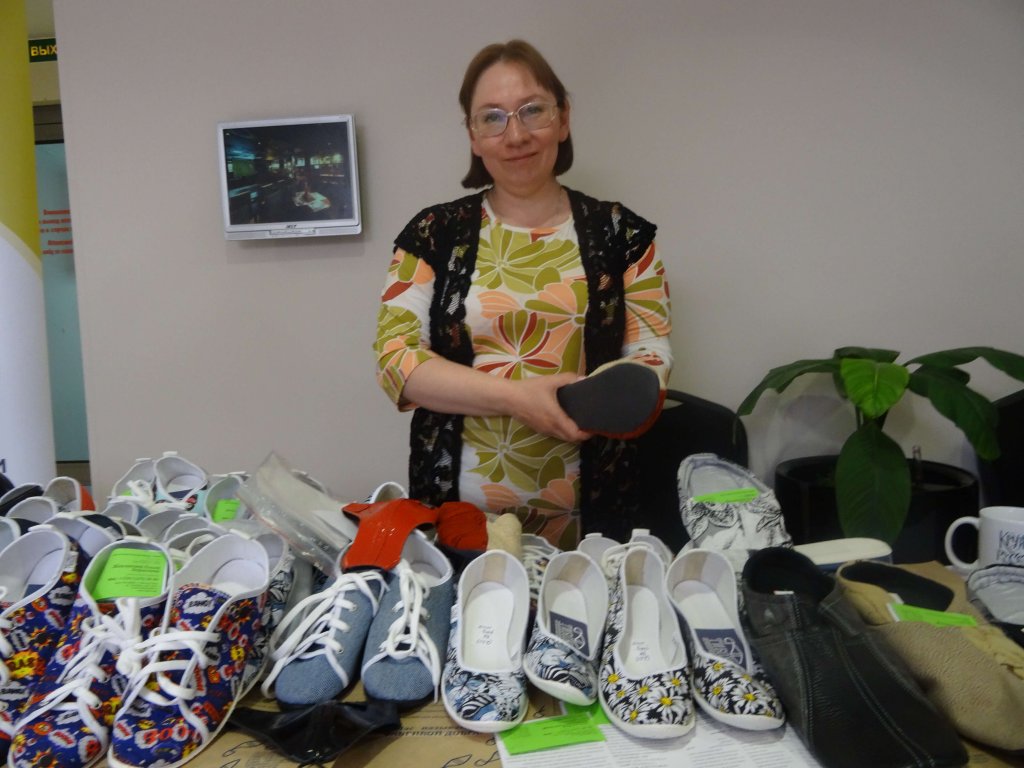 Социальные предприниматели продают свои изделия и отвечают на вопросы. Участники внимательно рассматривают сувениры от благотворительной организации «Ночлежка» и благотворительного фонда «Адвита», кеды и балетки от фабрики «ТИБОЖ». На этой фабрике обувь изготовляют люди с ограниченными возможностями здоровья.