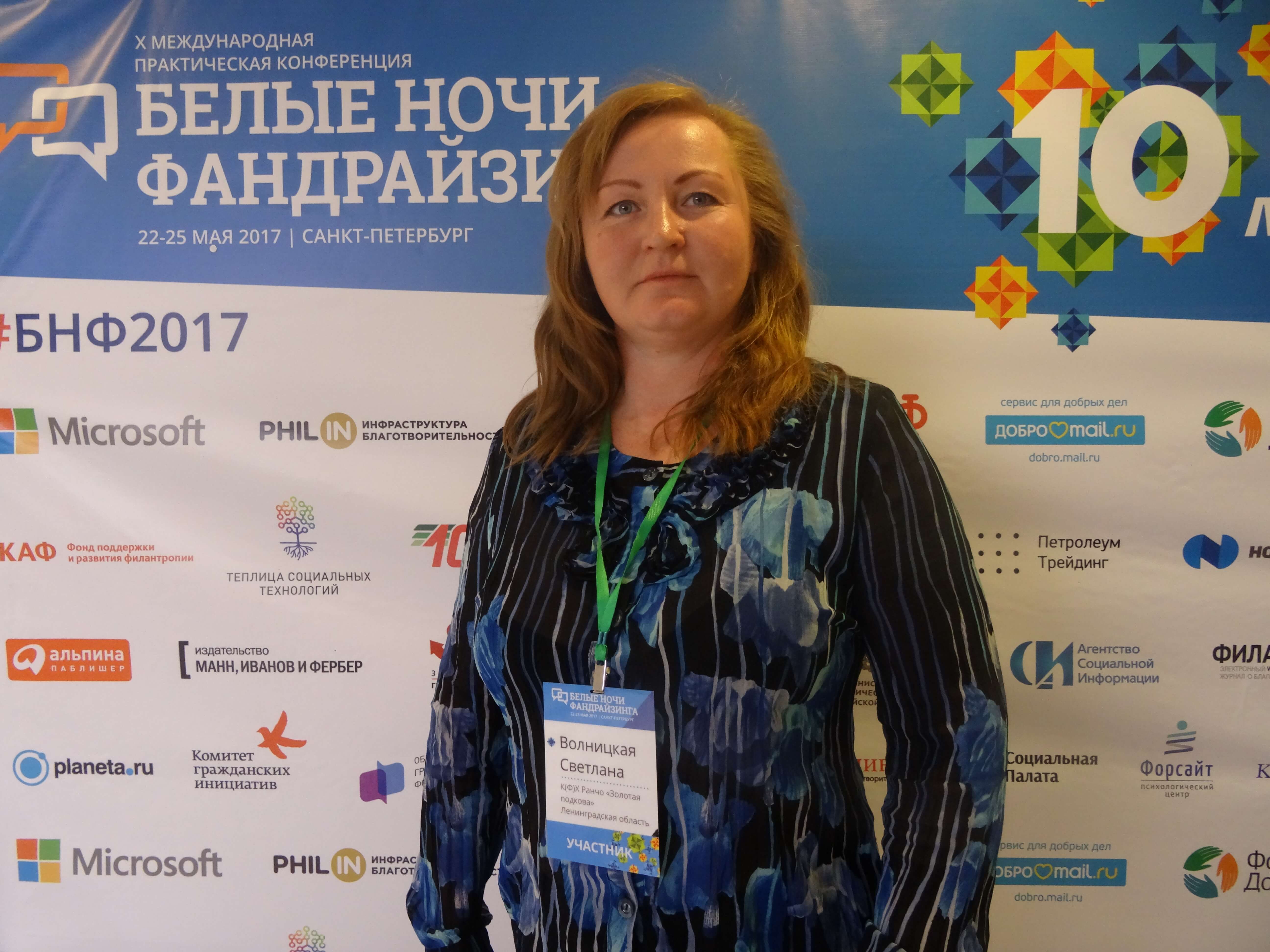 Один из организаторов конференции, директор по развитию ЦРНО Анна Клецина радостно наблюдает за ходом конференции. Она искренне довольна тем, что фандрайзинг в России с каждым годом становится популярнее и эффективнее.