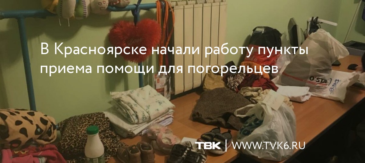 В Красноярске начали работу пункты приема помощи для погорельцев