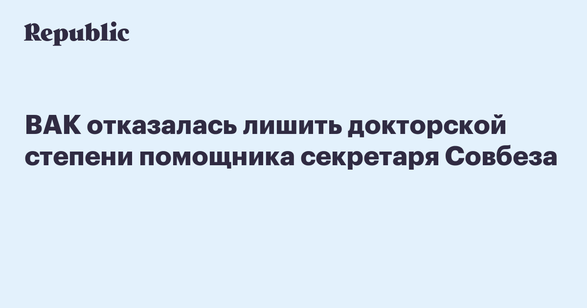 ВАК отказалась лишить докторской степени помощника секретаря Совбеза