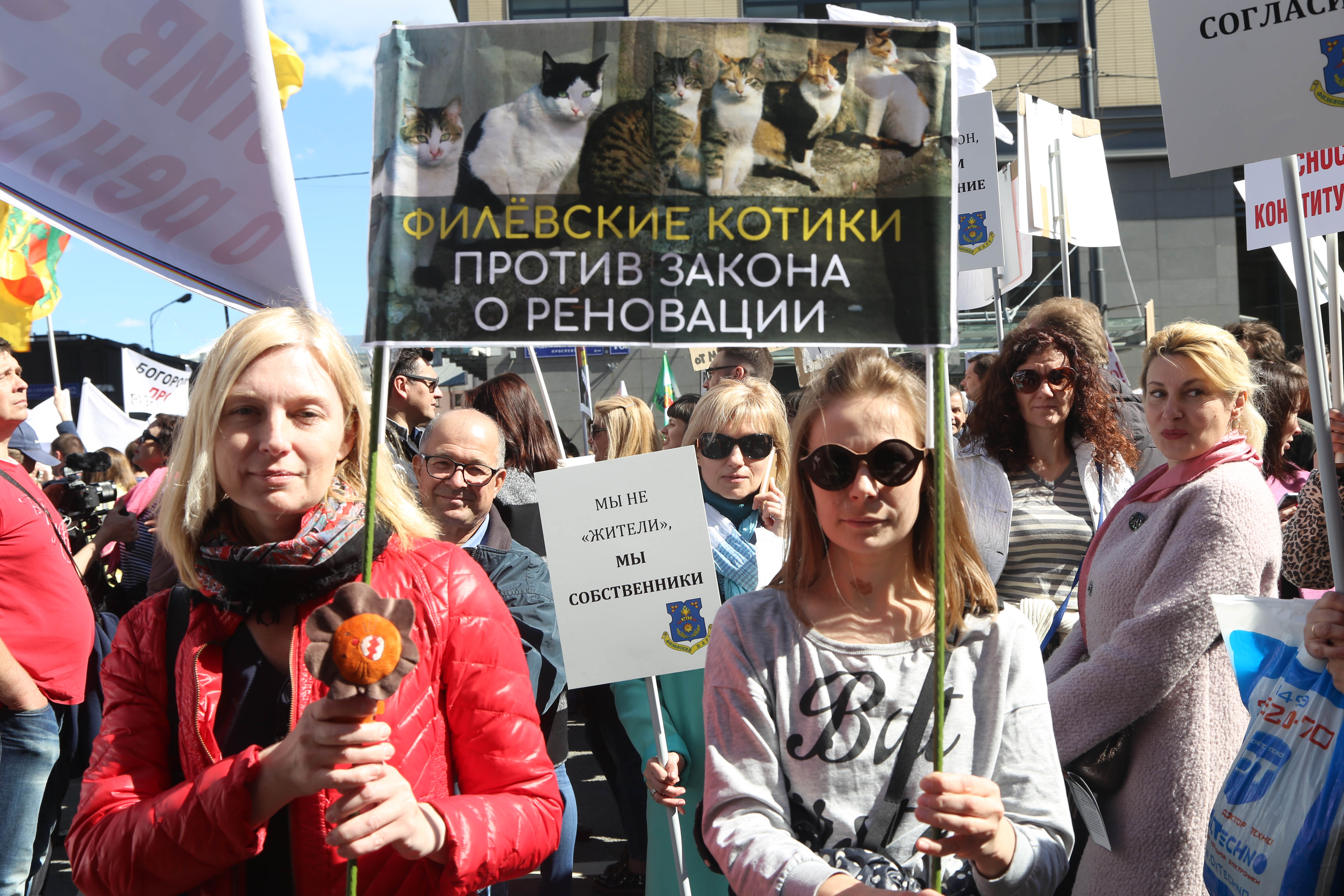 14 мая в Москве состоялся многотысячный митинг против сноса пятиэтажек, участники которого выразили недоверие мэру Москвы Сергею Собянину. Они также приняли резолюцию с требованием к властям отклонить законопроект о сносе старых домов как нарушающий конституционное право на частную собственность.