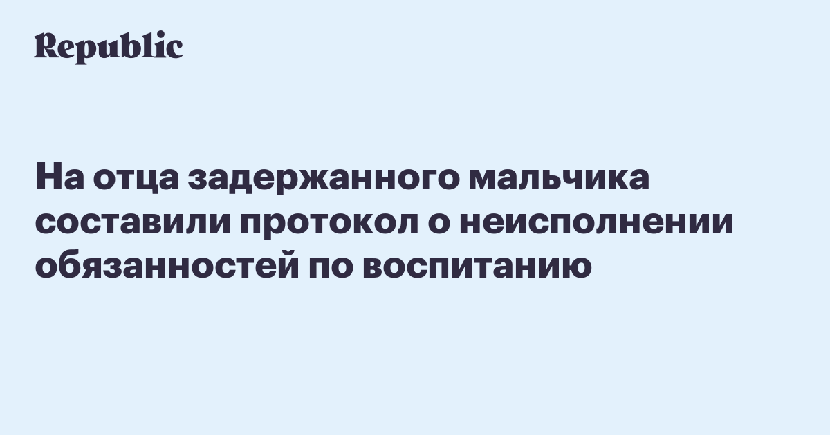 На отца задержанного мальчика составили протокол о неисполнении обязанностей по воспитанию