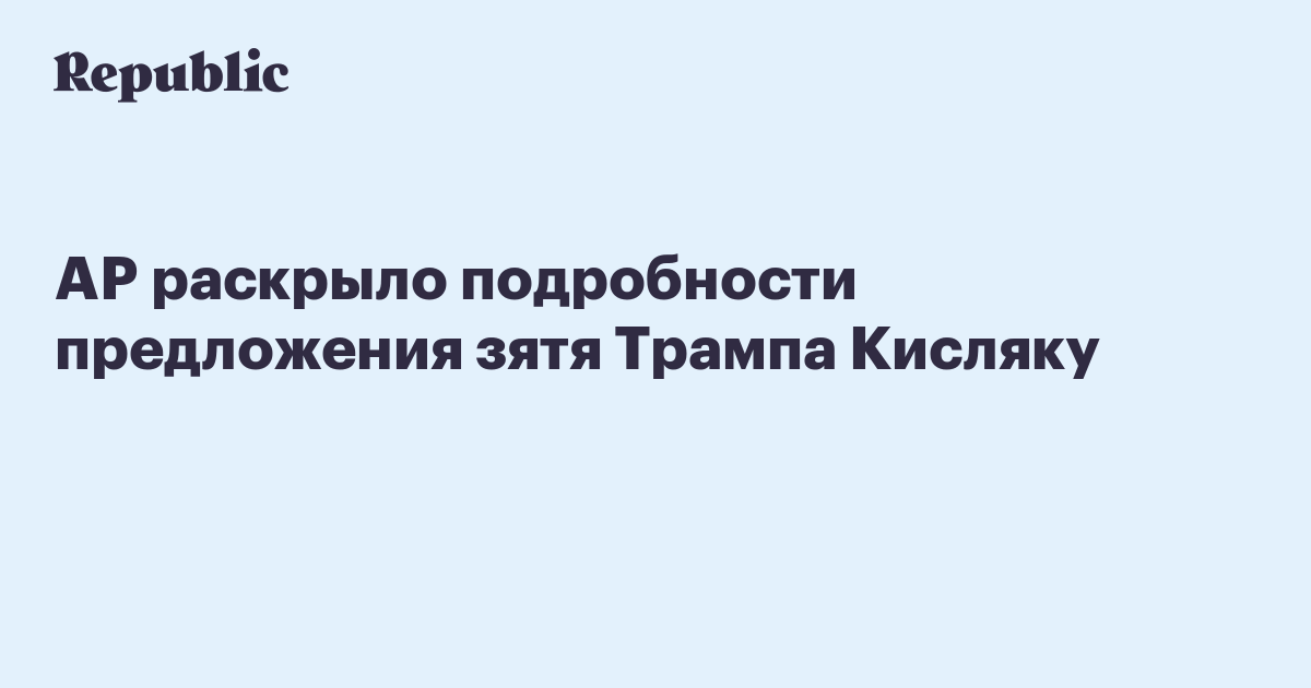 AP раскрыло подробности предложения зятя Трампа Кисляку