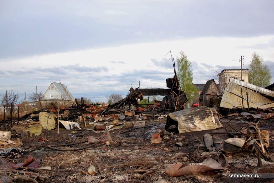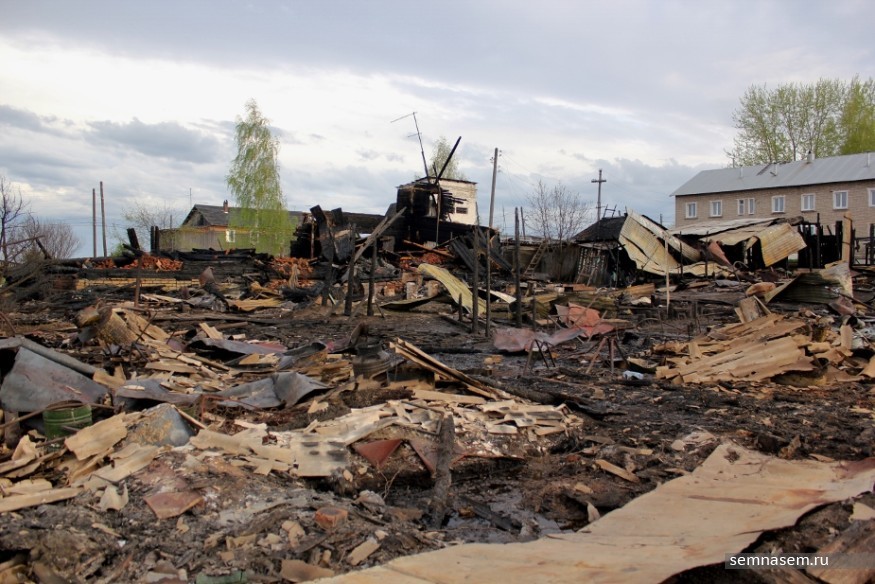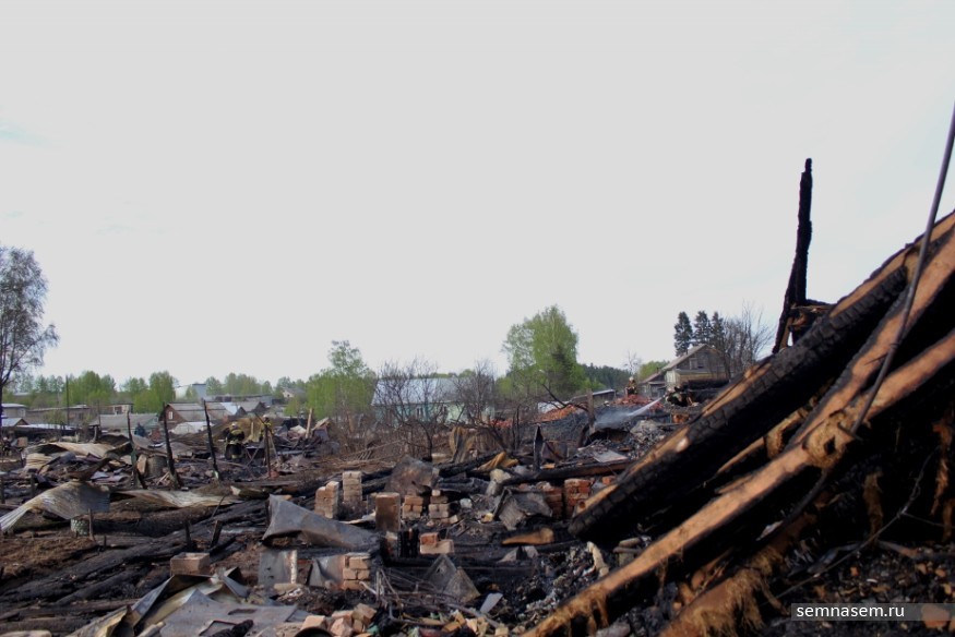 В городе Орлове в 77 километрах от Кирова 26 мая сгорели четыре деревянных дома, без жилья остались более 70 человек, в том числе 15 детей. Вечером того же дня с погорельцами встретились представители власти. Что осталось от сгоревшего квартала — в фоторепортаже «7x7».