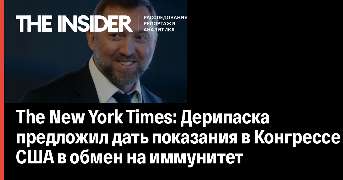 Российский предприниматель Олег Дерипаска предлагал сотрудничество комитету Конгресса США, который расследует влияние России на президентские выборы в обмен на иммунитет. Об этом пишет The New York Times со ссылкой на источники в Конгрессе.