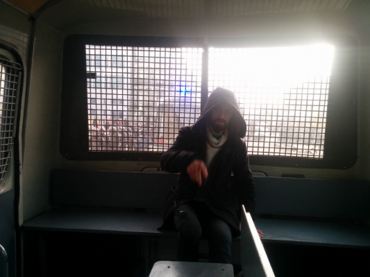 В какой-то момент прозвучало требование в мегафон сойти с проезжей части на тротуар — я, как и большинство, выполнил это требование. Тут же на тротуаре образовалось значительное скопление людей, затем меня окружил ОМОН, начали толкаться, на мое требование представиться старший ответил «В автозак захотел?», я ответил «Нет», он отдал приказ о задержании. Я сказал, что самостоятельно дойду до автозака, и мне не стали выкручивать руки, просто сопровождали, держа за рукав пальто. Возле автозака ОМОН передал меня полиции, все это время никто не представлялся и не называл причины моего задержания. В кузове автозака было двое: парень лет 20–22 и тот самый маргинал - он уже засыпал, растянувшись на лавке. Минут через 10–20 к нам завели еще одного парня лет 20. В таком составе мы и отправились в ОМВД «Красносельский».