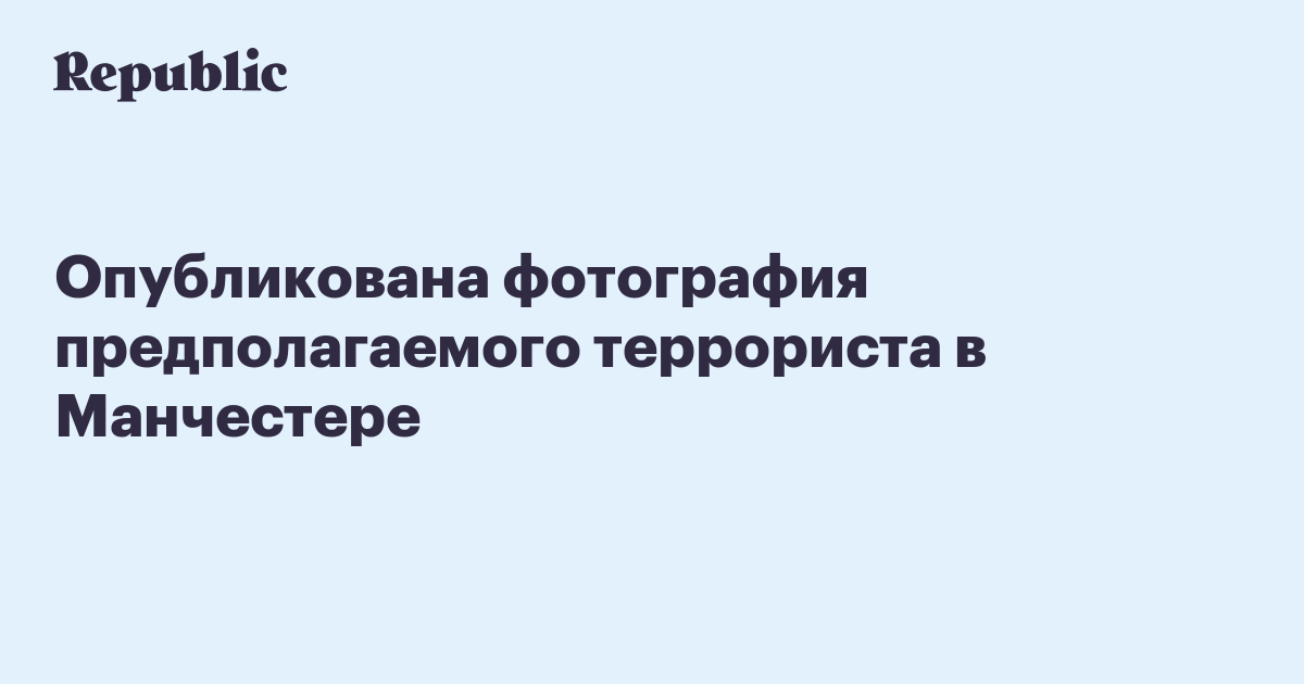 Полиция Манчестера опубликовала фотографию предполагаемого террориста-смертника Салмана Абеди, устроившего теракт на стадионе «Манчестер Арена».