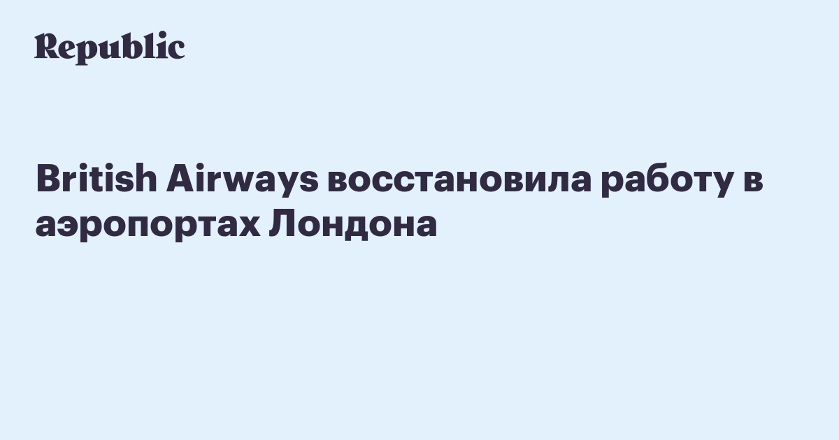 Как отмечает издание, компания будет работать по «практически штатному расписанию» в Гэтвике и запустит «большую часть сервисов» в Хитроу. BA также извинилась перед пассажирами за произошедшее.