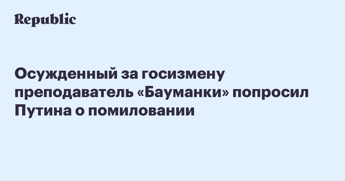 Осужденный за госизмену преподаватель «Бауманки» попросил Путина о помиловании