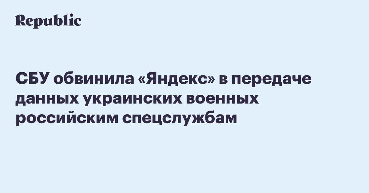 Служба безопасности Украины (СБУ) обвинила руководство компании «Яндекс» в передаче персональных данных украинских граждан российским спецслужбам. Об этом говорится в официальном заявлении на сайте СБУ.