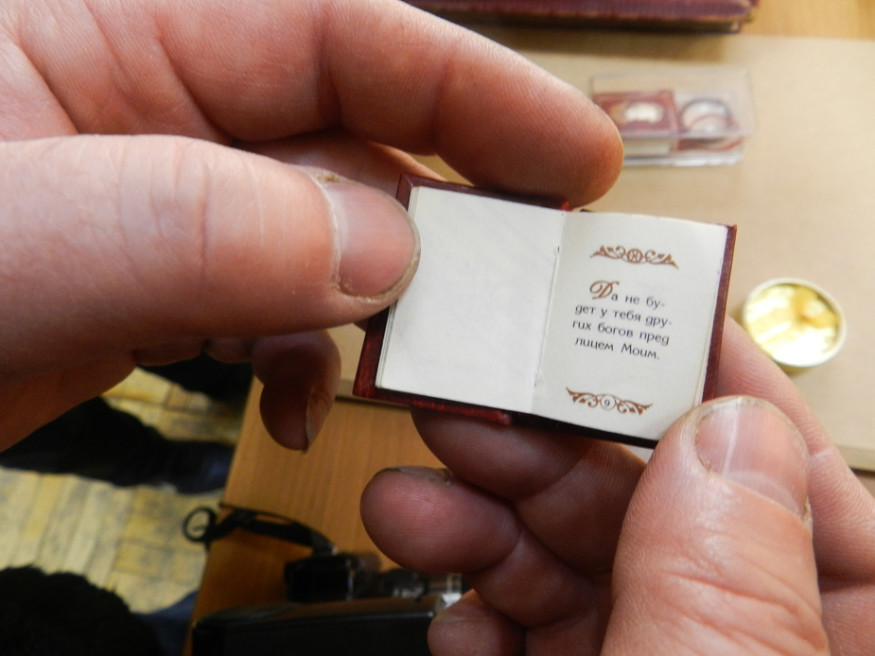 Сердитова показала зрителям самый старый журнал — журнал министерства народного просвещения за 1834 год, старинный псалтырь, специальное издание с иллюстрациями художника Виктора Васнецова и знаменитую библию издания Вольфа с иллюстрациями Густава Доре. Сотрудница библиотеки показала коллекцию миниатюрных книг, которые хранятся фактически в коробочках для колец. Иногда к таким книгам прилагалось увеличительное стекло.