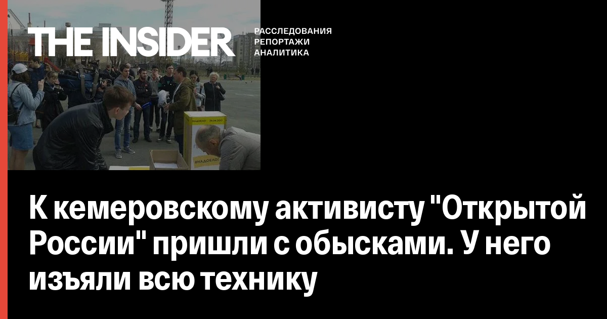 В Кемерове в 7 часов утра сотрудники ФСБ пришли с обыском к члену движения «Открытая Россия» Дмитрию Улитину. Об этом сообщается на сайте «Открытой России». Поводом послужил пост в социальных сетях с призывом принять участие в акции «Надоел» 29 апреля. Во время обыска у Улитина изъяли компьютерную технику.
