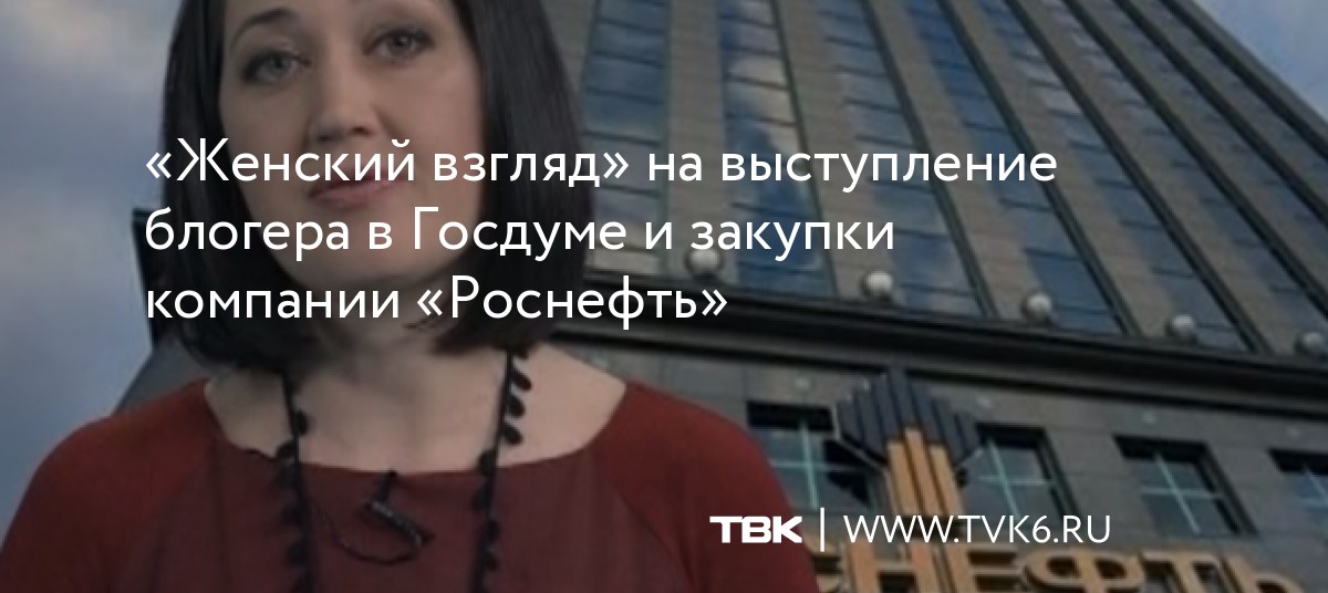 «Женский взгляд» на выступление блогера в Госдуме и закупки компании «Роснефть»