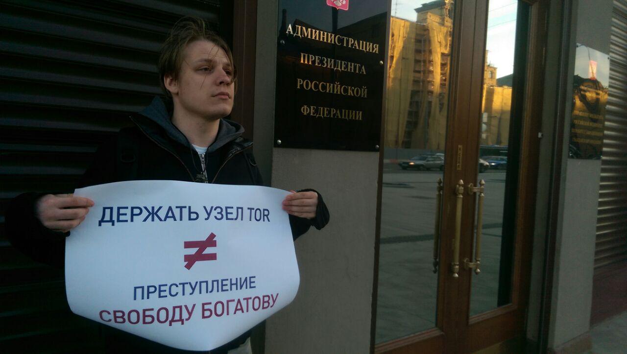 По словам Кошеляевой, в пикетах участвовали 15 человек. В ходе акции к ним походили полицейские, однако обошлось без задержаний. Пикетирующие вышли с плакатами «Держать узел TOR не преступление», «Ищите настоящих террористов, Богатов должен быть освобожден» и «Требуем справедливого расследования дела Дмитрия Богатова».