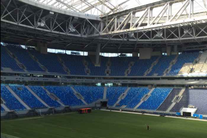 Ну что, Питер, встречай новое поле! На “Санкт-Петербург Арене” завершена укладка рулонного газона. pic.twitter.com/Ww5UPhjoTU