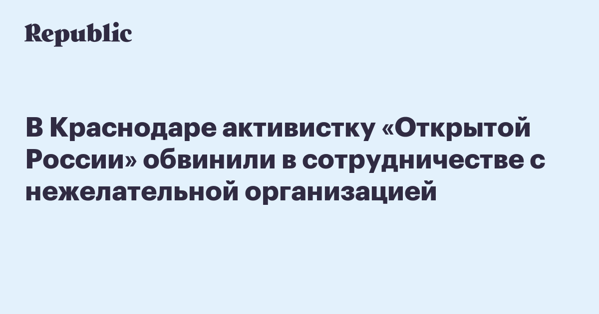 В Краснодаре активистку «Открытой России» обвинили в сотрудничестве с нежелательной организацией