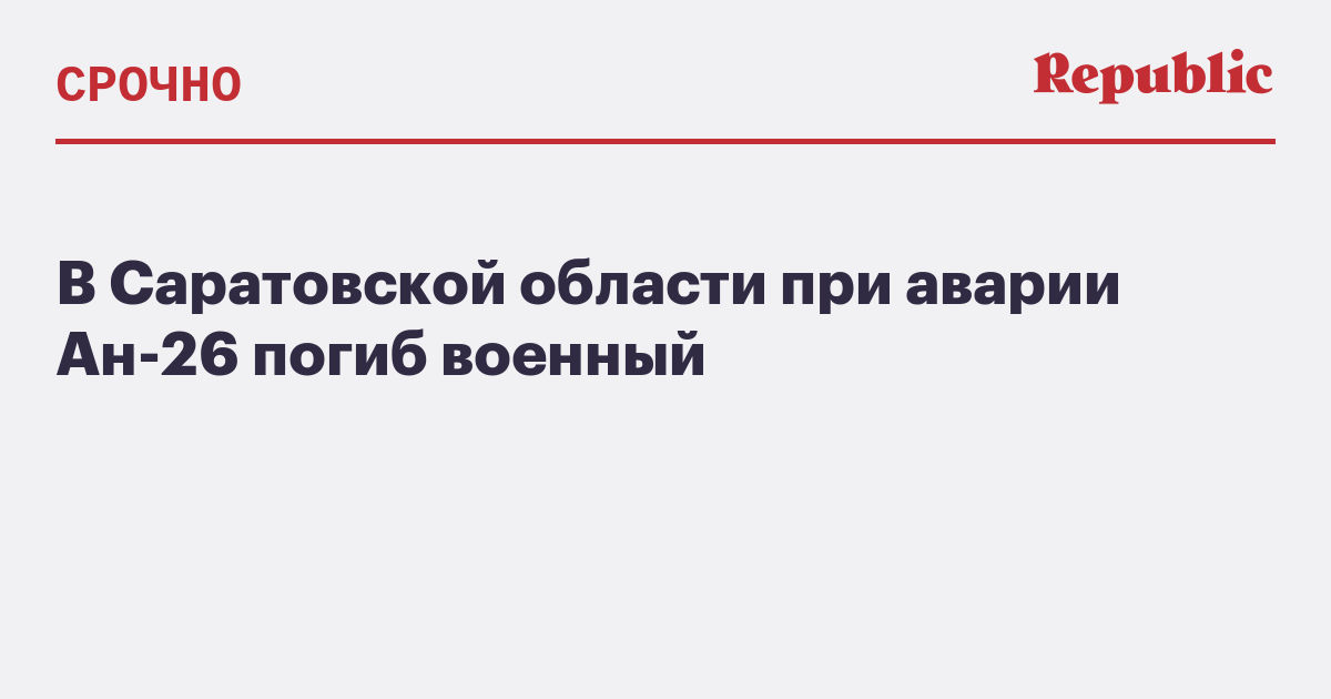 При аварии Ан-26 в Саратовской области погиб один военный, сообщает «Интерфакс» со ссылкой на Минобороны.