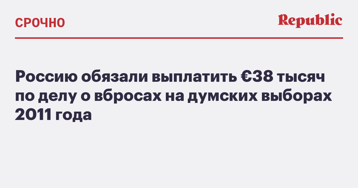 Россию обязали выплатить €38 тысяч по делу о вбросах на думских выборах 2011 года